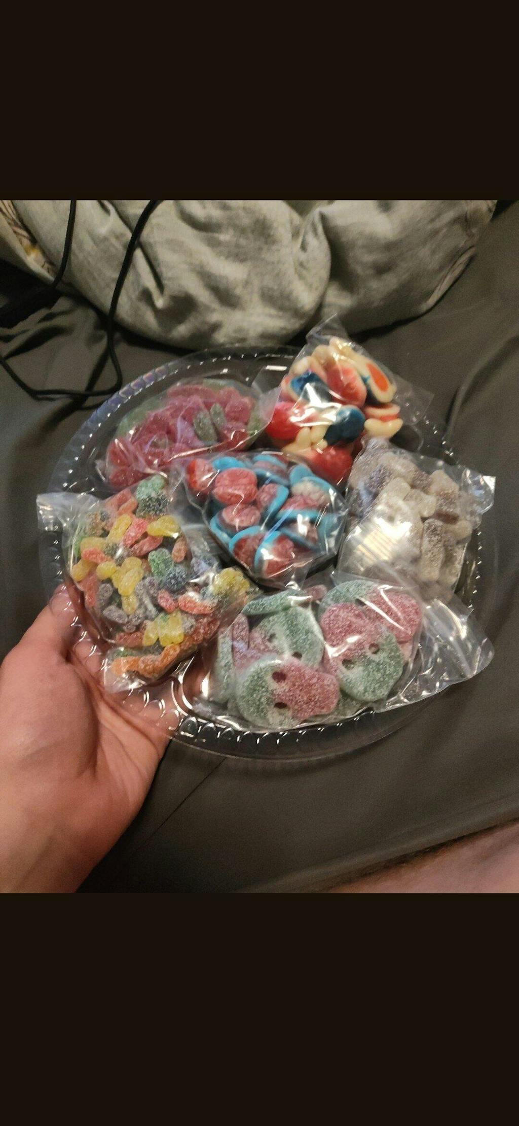 Petite Mix includes up to 1 premium gummy selections, Sweet Spot includes up to 2 and Sweet Indulgence includes up to 4 premium gummy selections. Tackle Box is ~2.5lbs of candy. Platter is ~2lbs of candy. If a gummy selection is out of stock we will substitute with a similar item (or) include more of the other requested items.